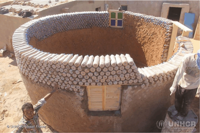 Nascido e criado no campo de refugiados, Tateh Lehbib Breica, de 27 anos, está construindo casas resistentes a desastres usando garrafas de plástico descartadas.  Dignidade para a vida das pessoas e respeito ao meio ambiente. Tudo de bom!