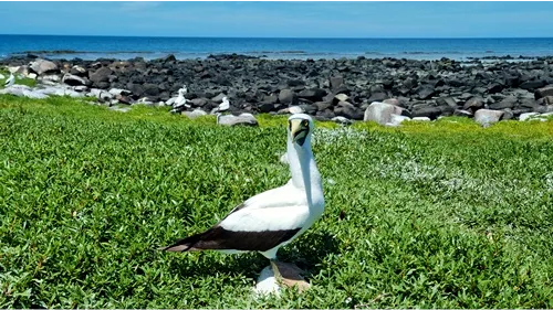São muitas e  de várias espécies ,  como atobás, fragatas, gaivotas…